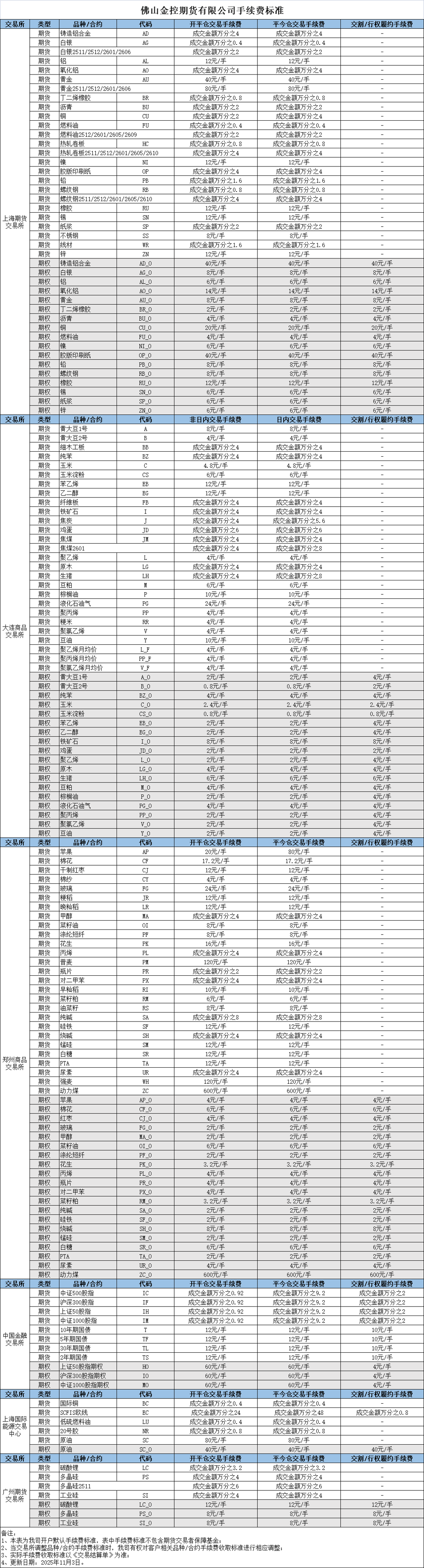 佛山金控期货有限公司手续费标准公示