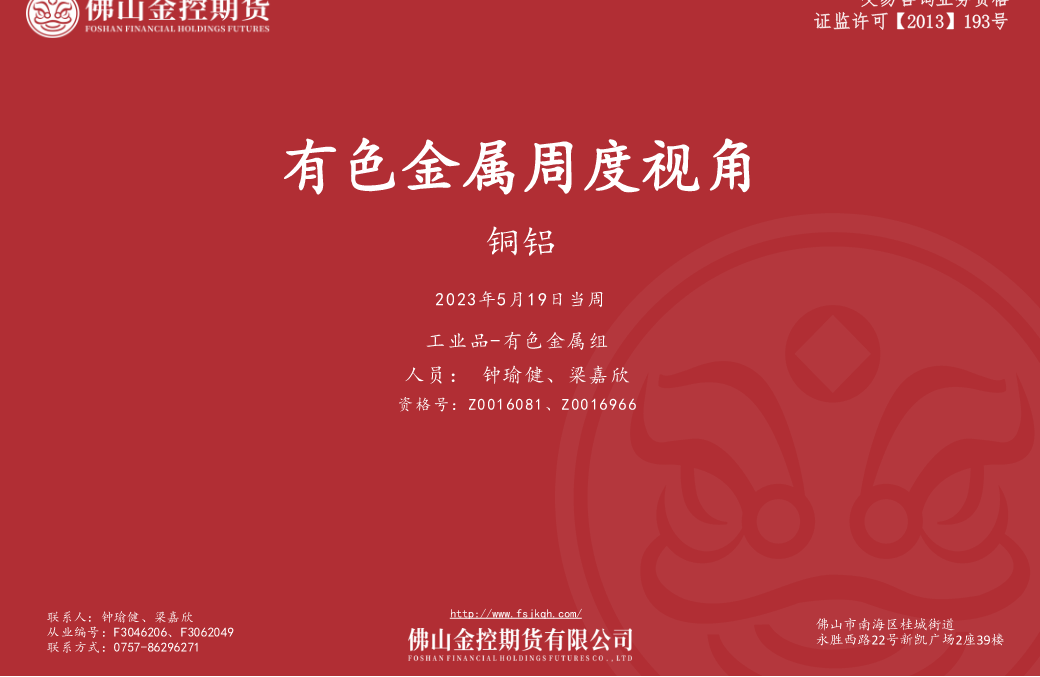 有色产业周度视角——铜铝(5月19日当周)